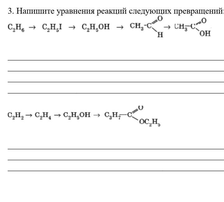 3) CH3-CH3 + I2 -> CH3-CH2-I + HI (hy)