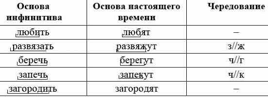 Одинаковые ли основы инфинитива и настоящего (будущего) времени глаголов: любить, развязать, беречь, запечь, загородить? Запишите и обозначьте чередование согласных в корнях.