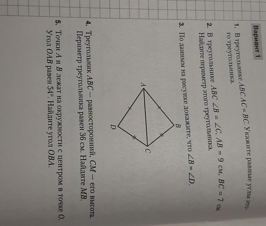 3)Нам дано, что АВ = AD, a BC = DC, AC - общая сторона, а по 3 признаку равенства треугольников, если 3 стороны одного треугольника равны 3 сторонам другого - то треугольники равны, значит треугольник ABC = треугольник ADC, а значит угол В равен углу D