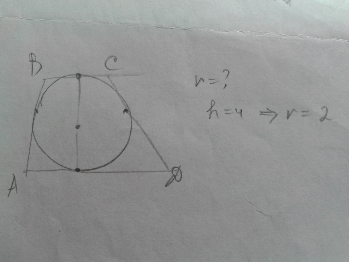 Два радиуса составляют высоту трапеции.