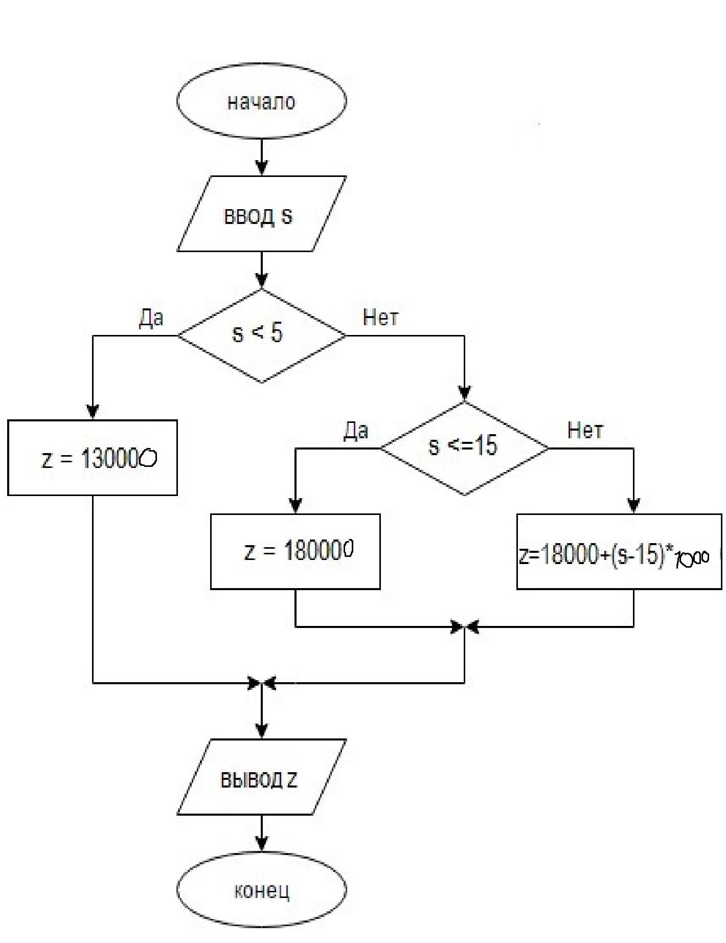 Составить алгоритм (схему) начисления зарплаты согласно следующему правилу: