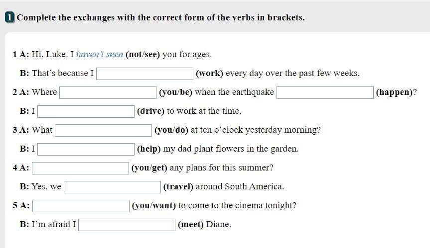 1 A: Hi, Luke. I haven’t seen (not/see) you for ages.