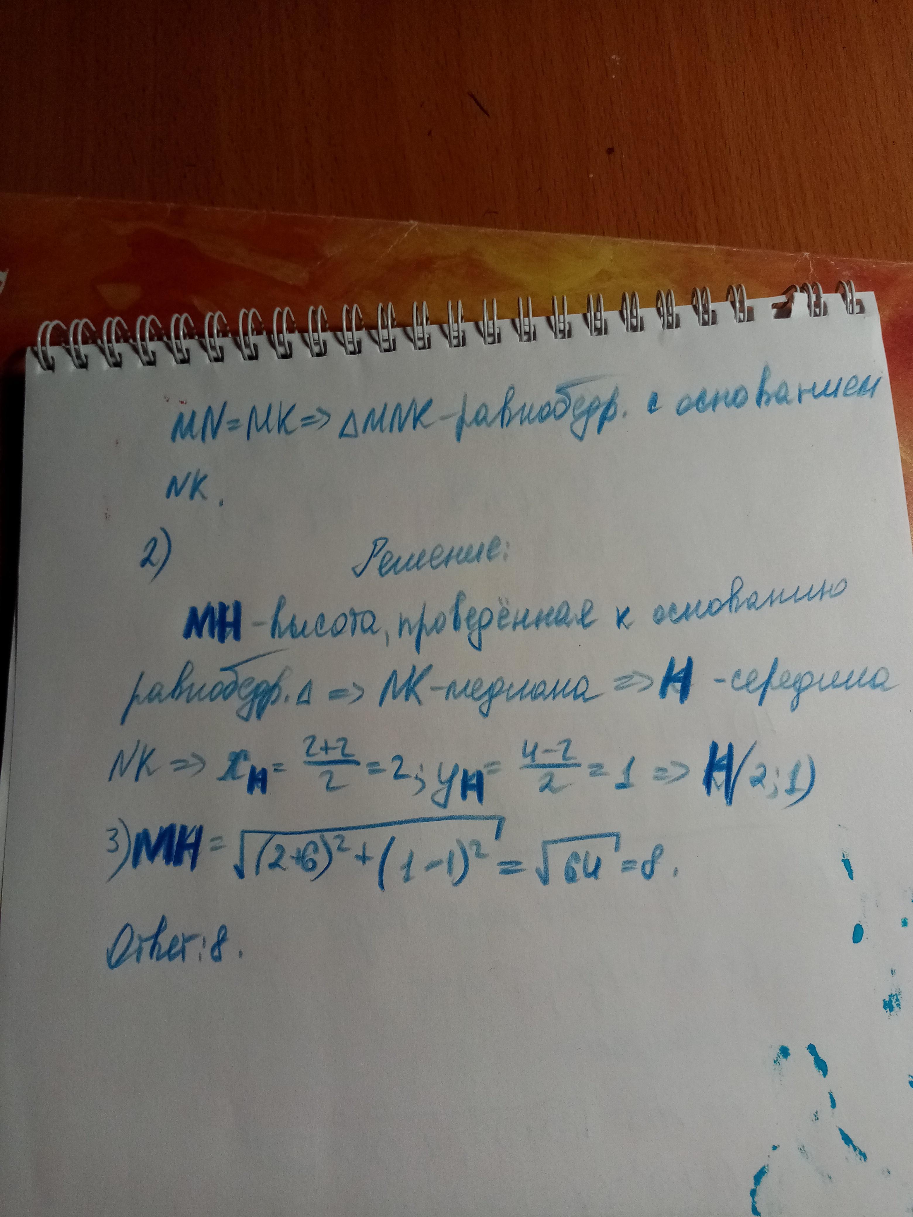 Δ MNK задан координатами своих вершин: М (-6;1), N (2;4),