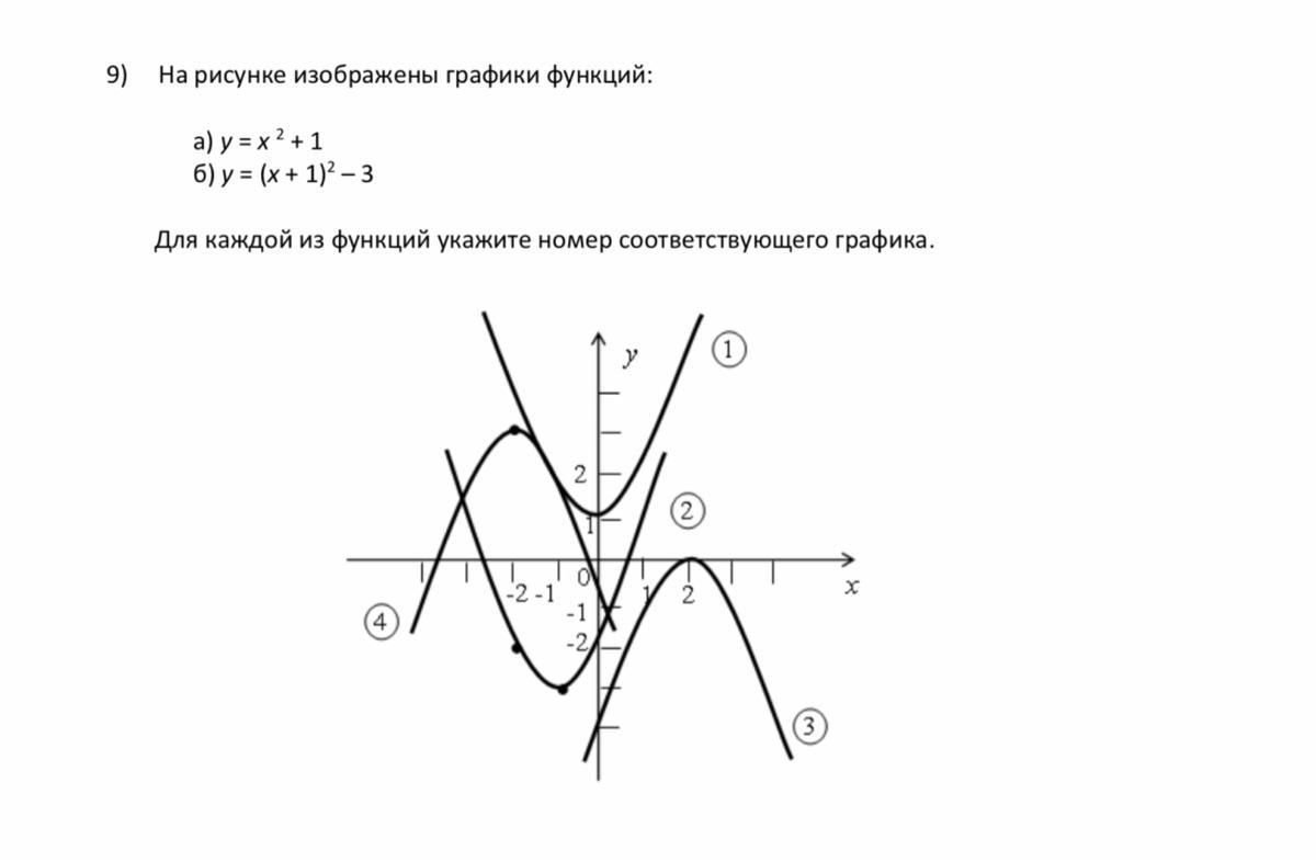 На рисунке изображены графики функций. Для каждой из функций укажите номер соответствующего графика