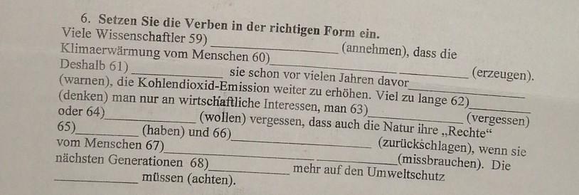 68 Die nächsten Generationen müssen mehr auf den Umweltschutz achten.