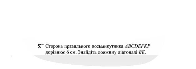 Будем рассматривать трапецию ВСDE. Проведём из С высоту CC1 к BE. Так как дан изначально правильный восьмиугольник, то у него углы равны 135 градусам. А зная, что угол DCC1 равен 90 градусам, то треугольник ВСС1 равнобедренный, то есть ВС1=СС1