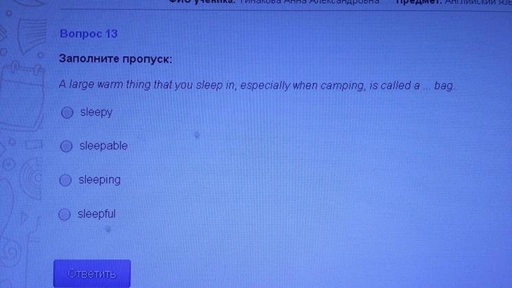 Sleeping bag, ответ 3, и в предыдущем вопросе тебе неправильно ответили, а ты ему лучший ответ поставил)
