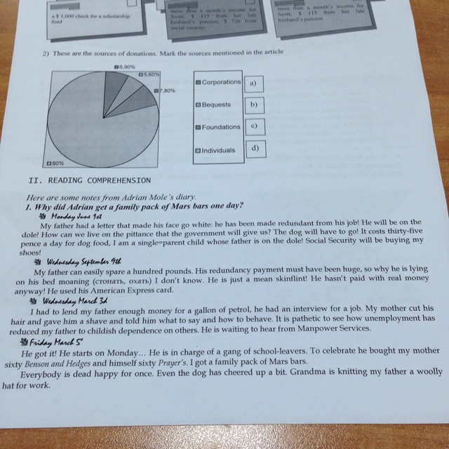 Adrian got a family pack of Mars bars one day because his father got a new job at last.