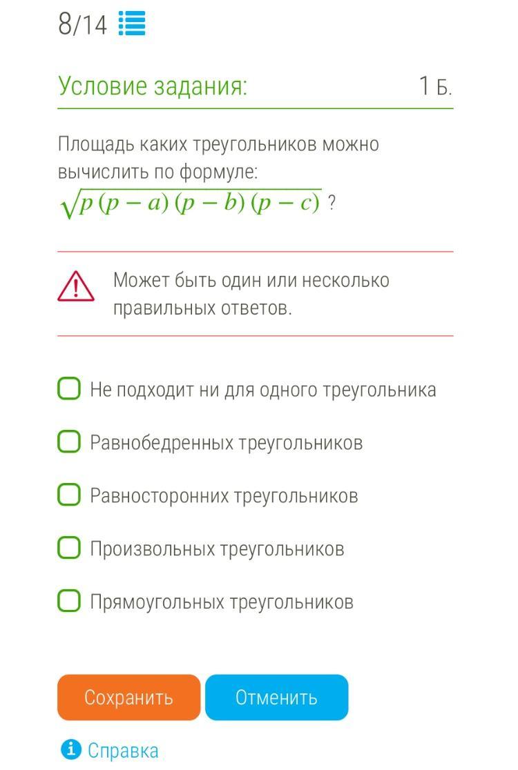 1) Это формула Герона. Она применима ко всем треугольникам.