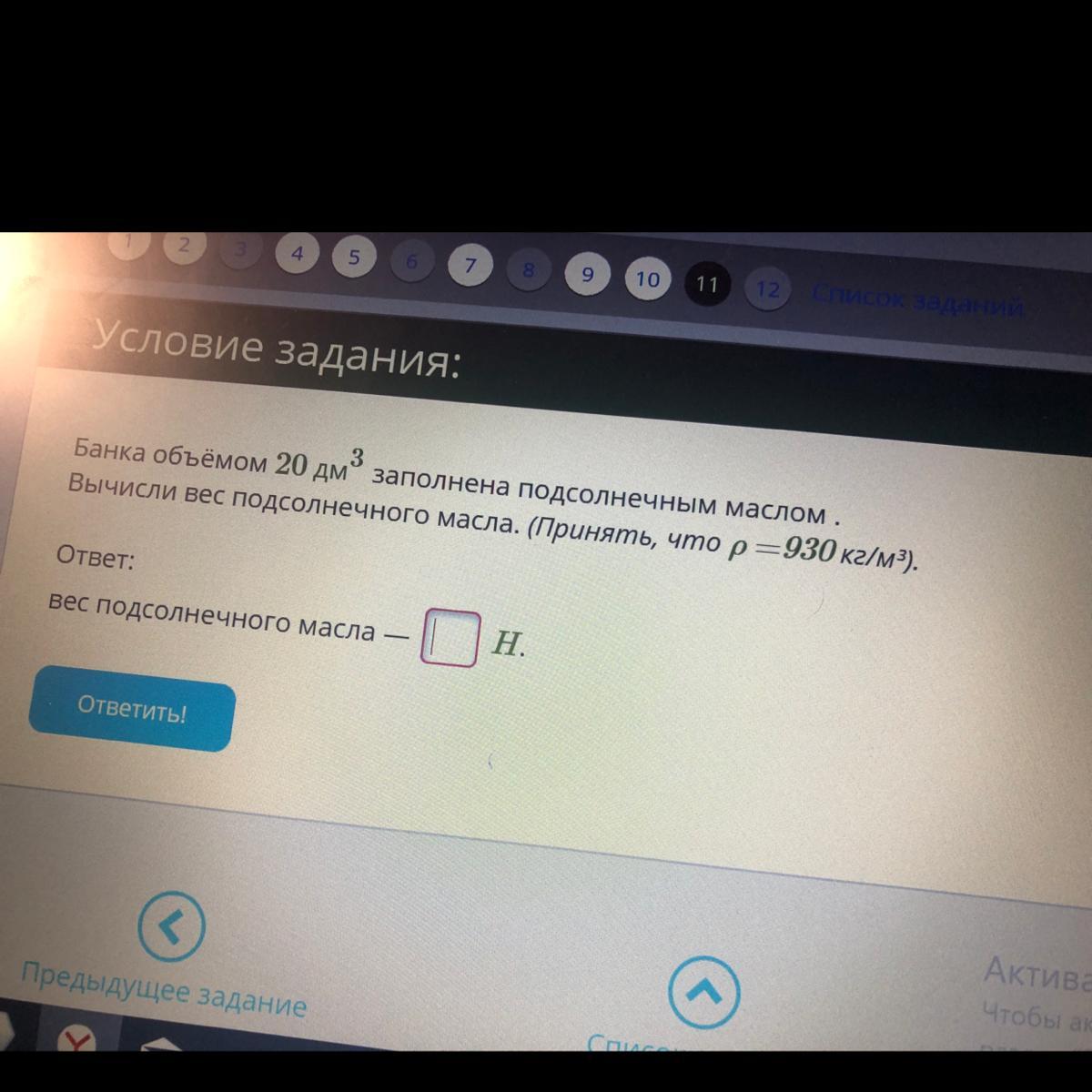Дано: V=20 дм³=20 л=0,02 м³; ρ=930 кг/м³; Р - ?