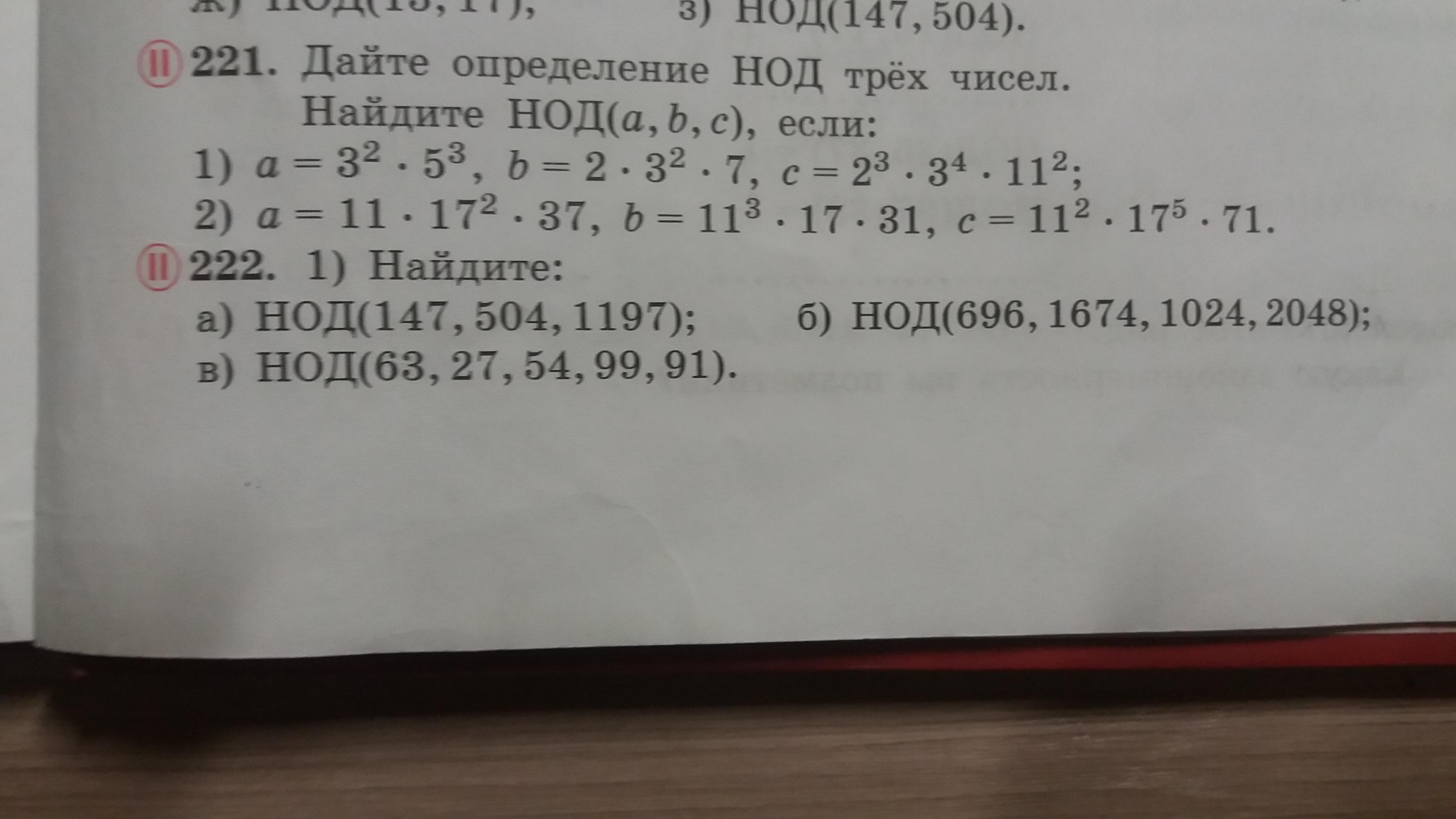 НОД (147; 504; 1197) = 3 • 7 = 21