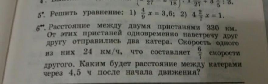 так как скорость первого катера составляет 6/7 скорости второго, то скорость второго равна (24:6)*7=28