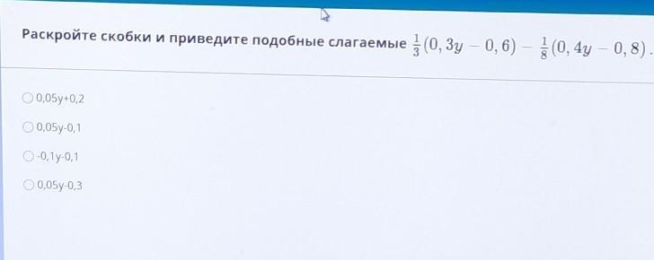 1/3(0,3у-0,6)-1/8(0,4у-0,8)=1/3*3/10у-1/3*6/10-1/8*4/10у-1/8*8/10=0,1у-0,2-0,05у+0,1=0,05у-0,1