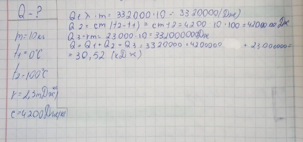 Q2=cm(t2-t1)=cmt2=4200•10•100=4200000(Дж)