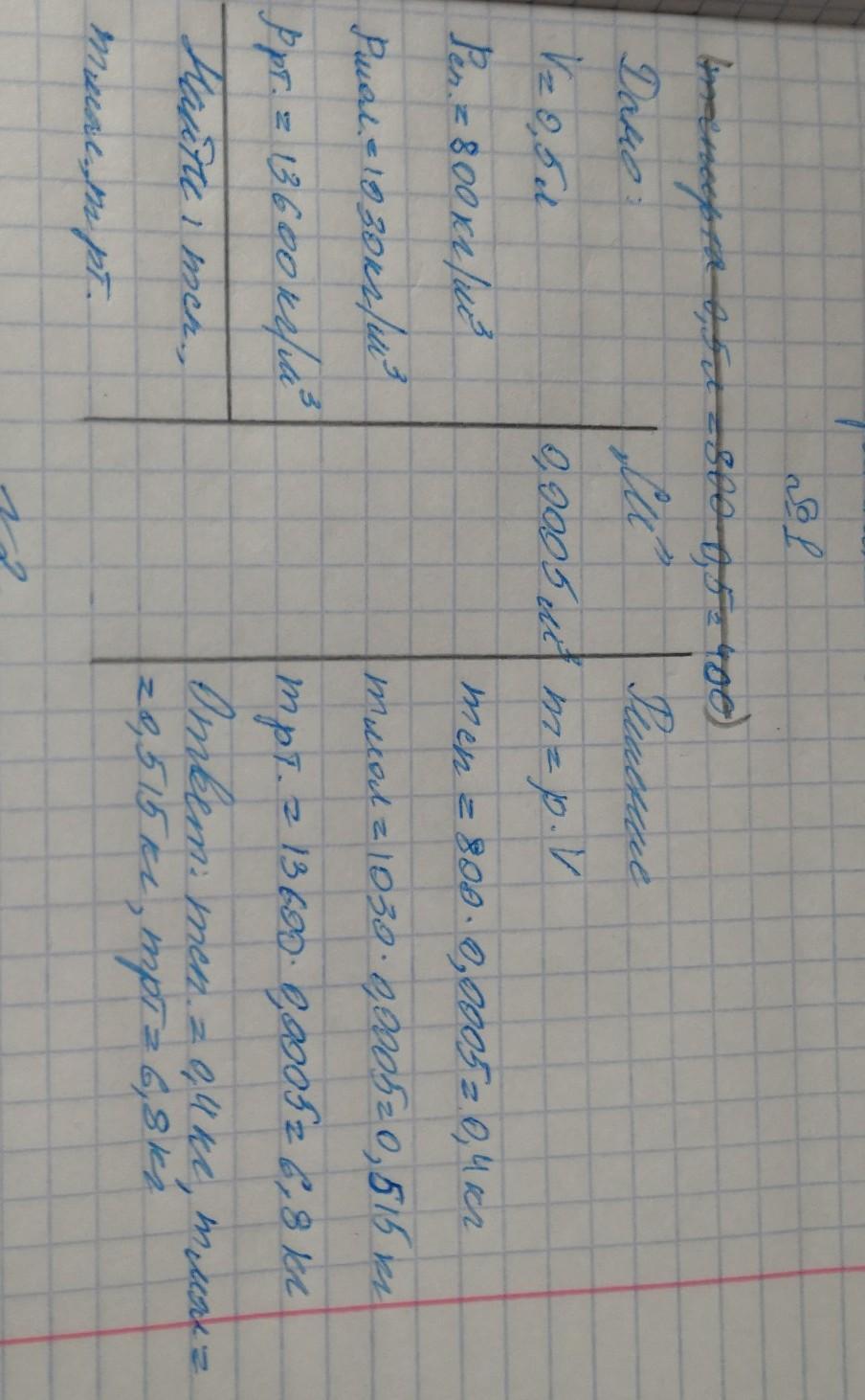 0,0005м³•13,6•10³кг/м³=6,8кг - ртуть