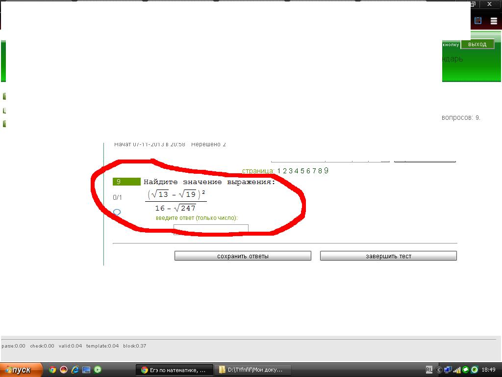 ( sqrt{13}- sqrt{19}  )^2/(16- sqrt{247} )=(13-2 sqrt{13*19}+19 )/(16- sqrt{13*19} )=2(16- sqrt{13*19} )/(16- sqrt{13*19} )=2