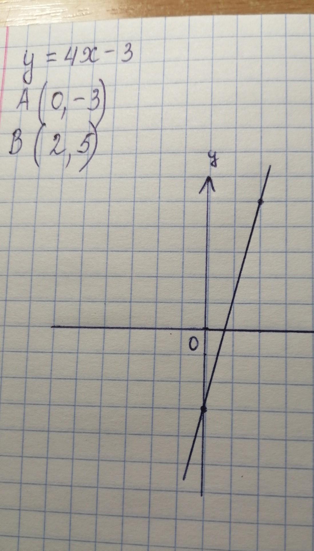 Видимо, формула выглядит так: y=4x-3. График данной функции- прямая.