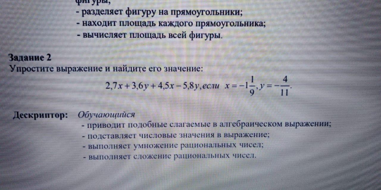 2,7х+3,6у+4,5х-5,8у=7,2х-2,у=7 2/10*(-1 1/9)-2 2/10*(-4/11)= -72/10*10/9+22/10*4/11=-72/9+4/5=-8+4/5=-7 4/5=-7,8