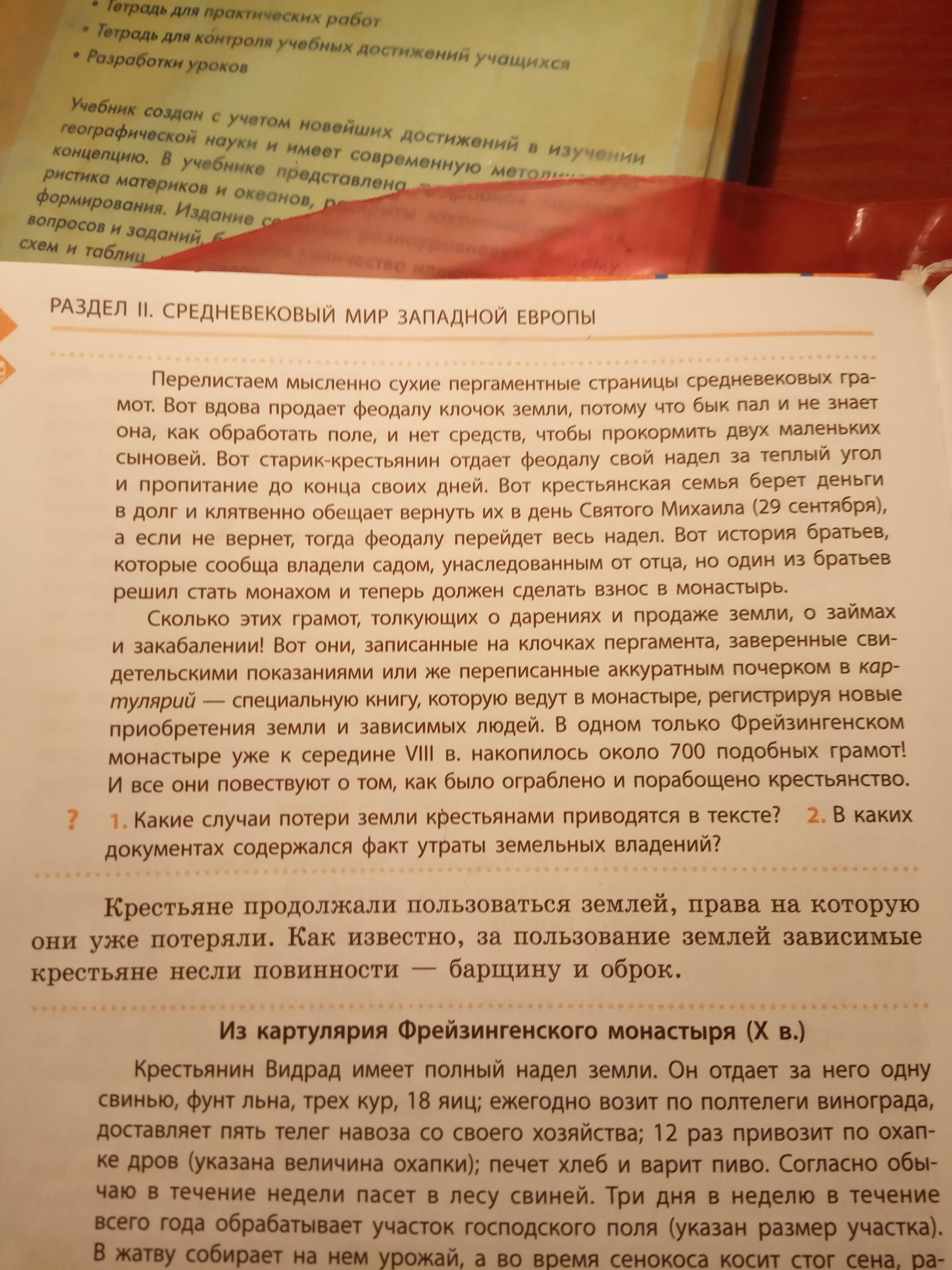 •старик-крепостьянин отдает феодалу свой надел.