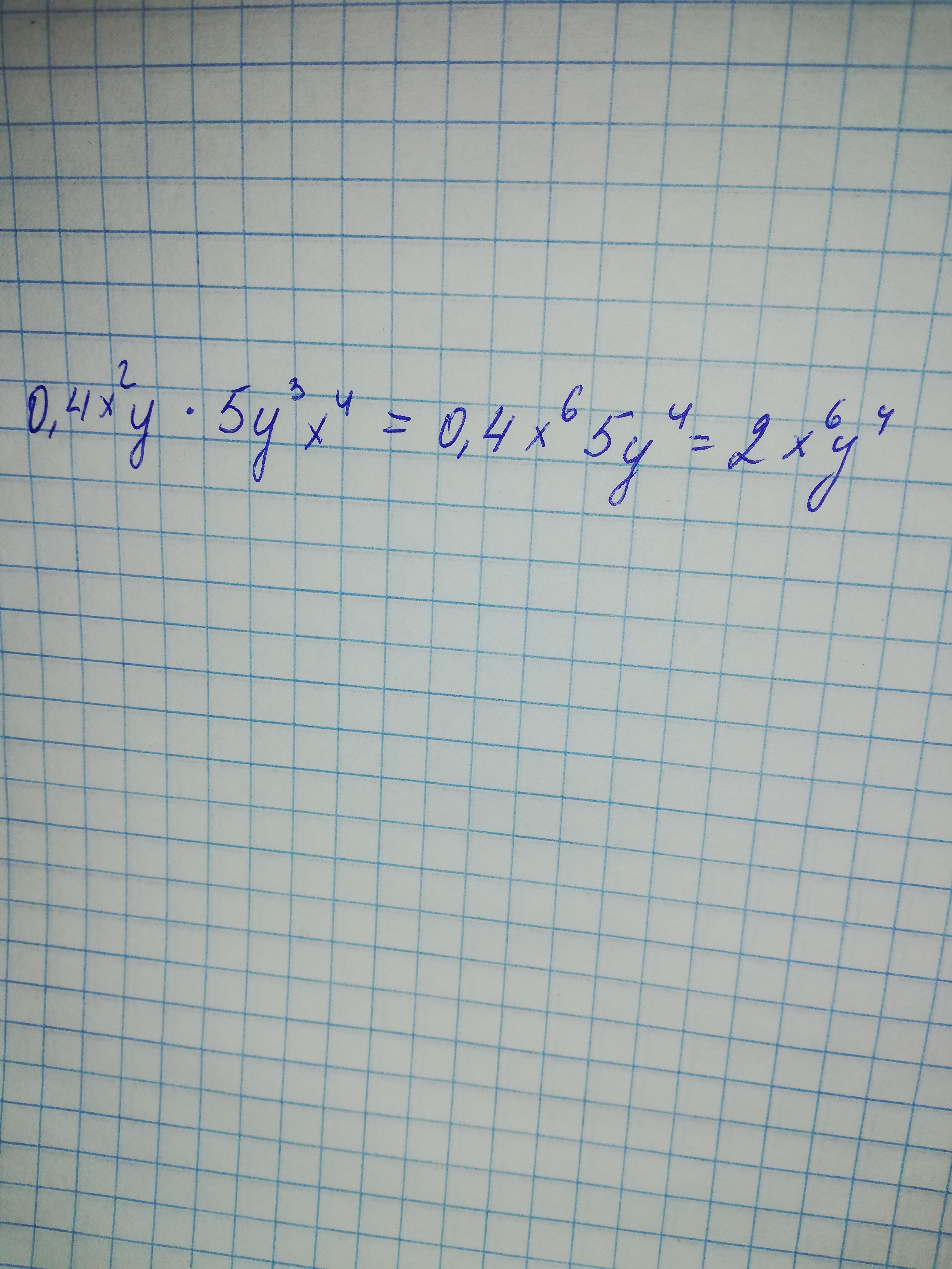 Объяснение:перемножаем числовые коэфициэнты, складывает степени х и у