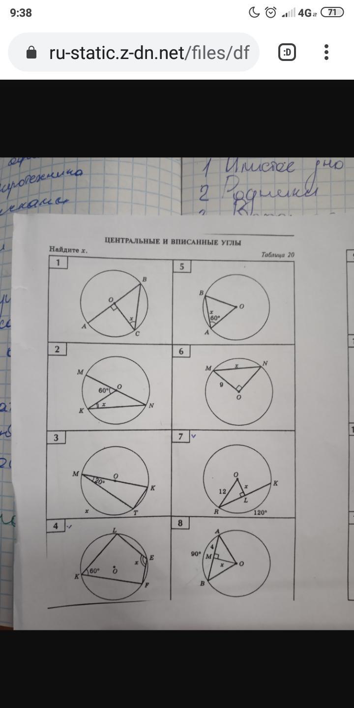 5)здесь я не совсем поняла, что надо найти, если дугу, на которую опирается треугольник, то 60º