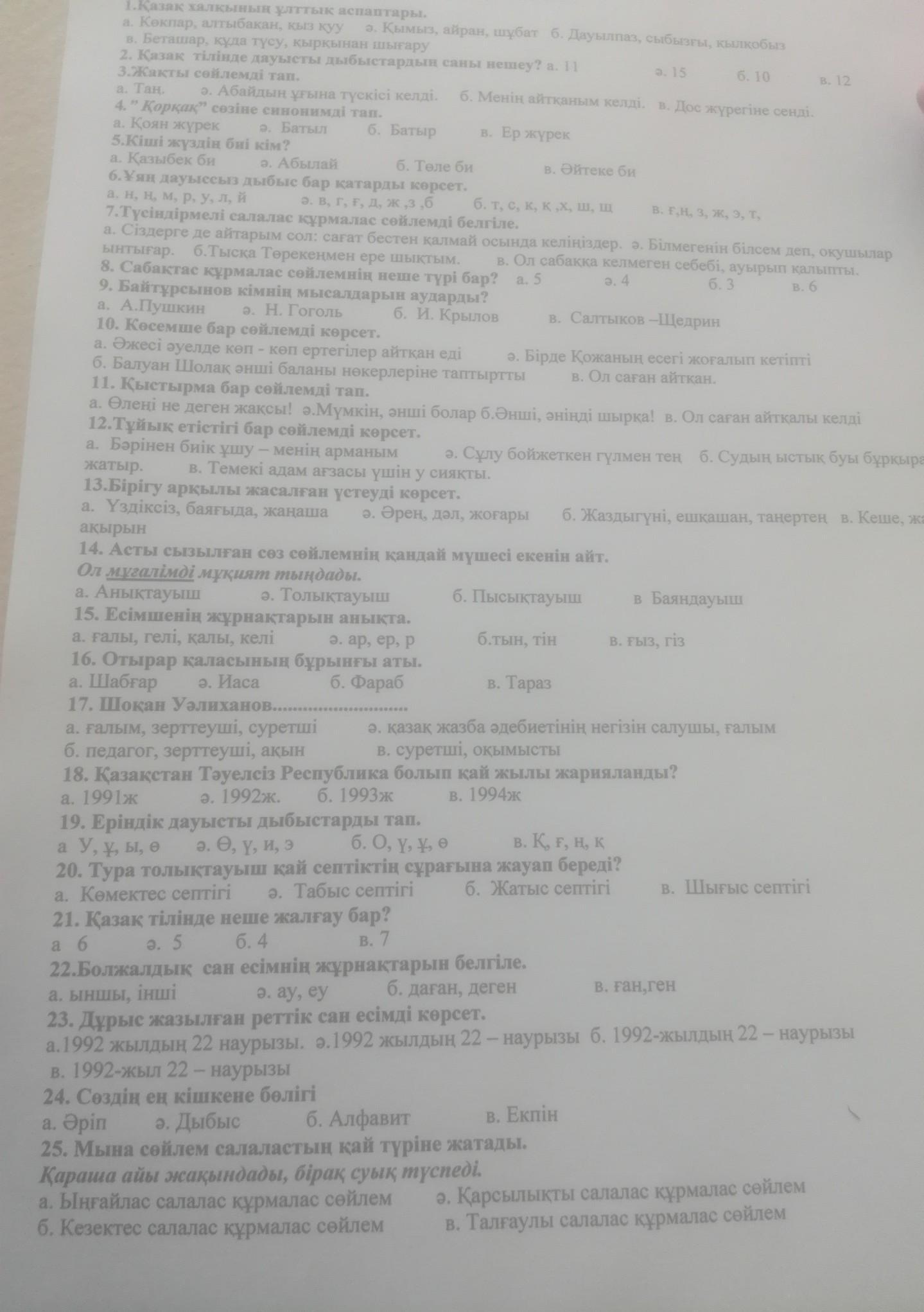 1 а 2ә 3в 4а 5в 6а 7ә 8б 9б ;10а 11ә 12б 13б 14а 15б 16б 17б 18а 19б 20в 21б 22в 23а 24ә 25в