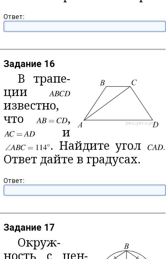 равнобедренная трапеция ,значит углы при основании равны. Значит угол СДА равен 180° - 114° = 66° градусов. треугольник САД равнобедренный. углы при основании равны 66 каждый , значит угол САД равен 180° - 66 °- 66 °= 48° градусов