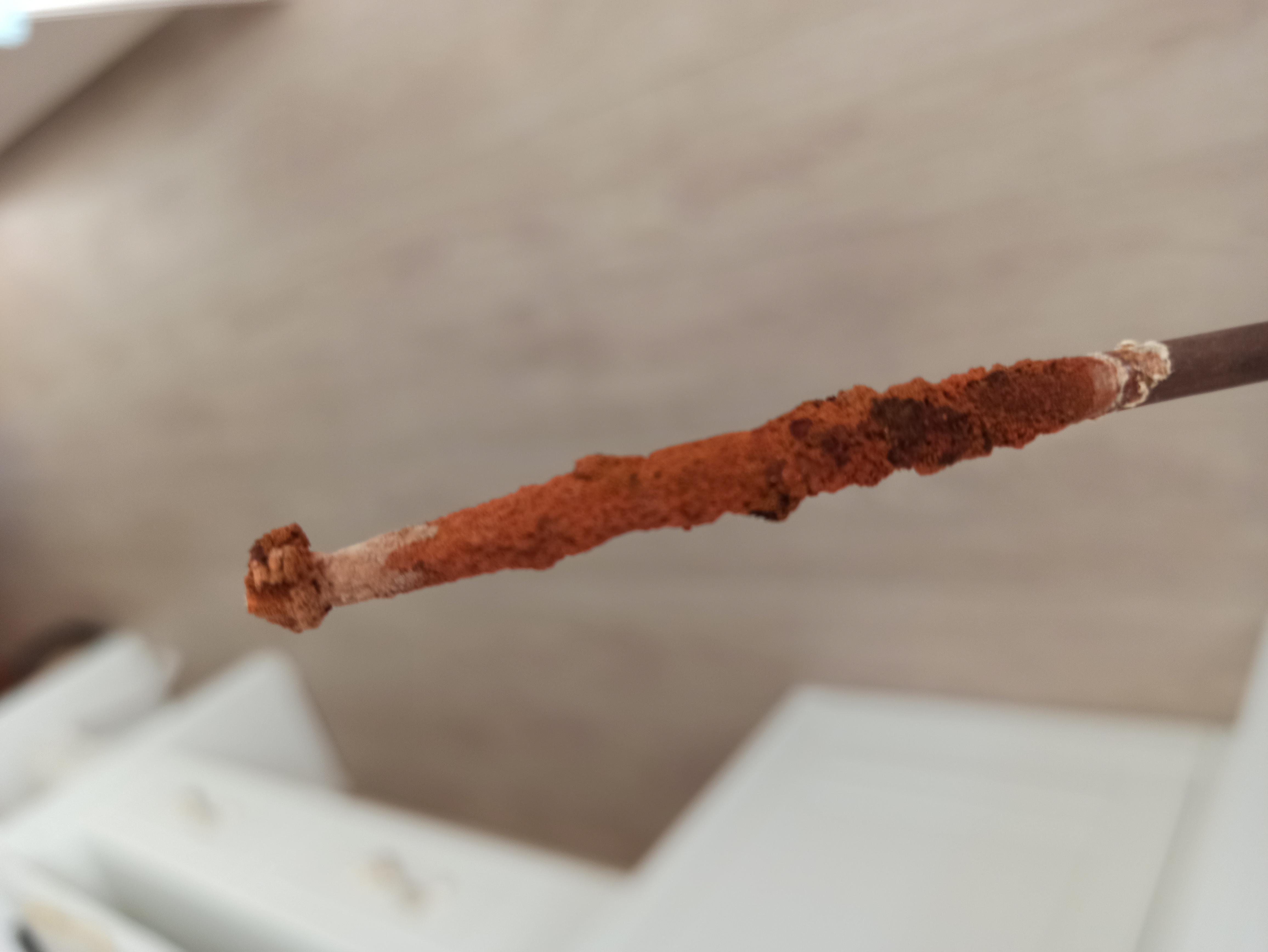 Проводила опыт, опустила гвоздь в медный купорос. Не знаю медь, ли это? Похоже очень на ржавчину. Как вы считаете, медь или ржавчина?
