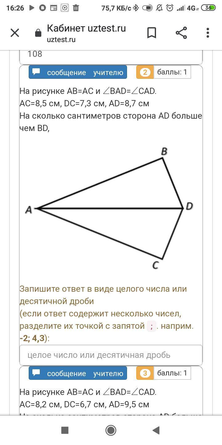 AC=8,5 см, DC=7,3 см, AD=8,7 см