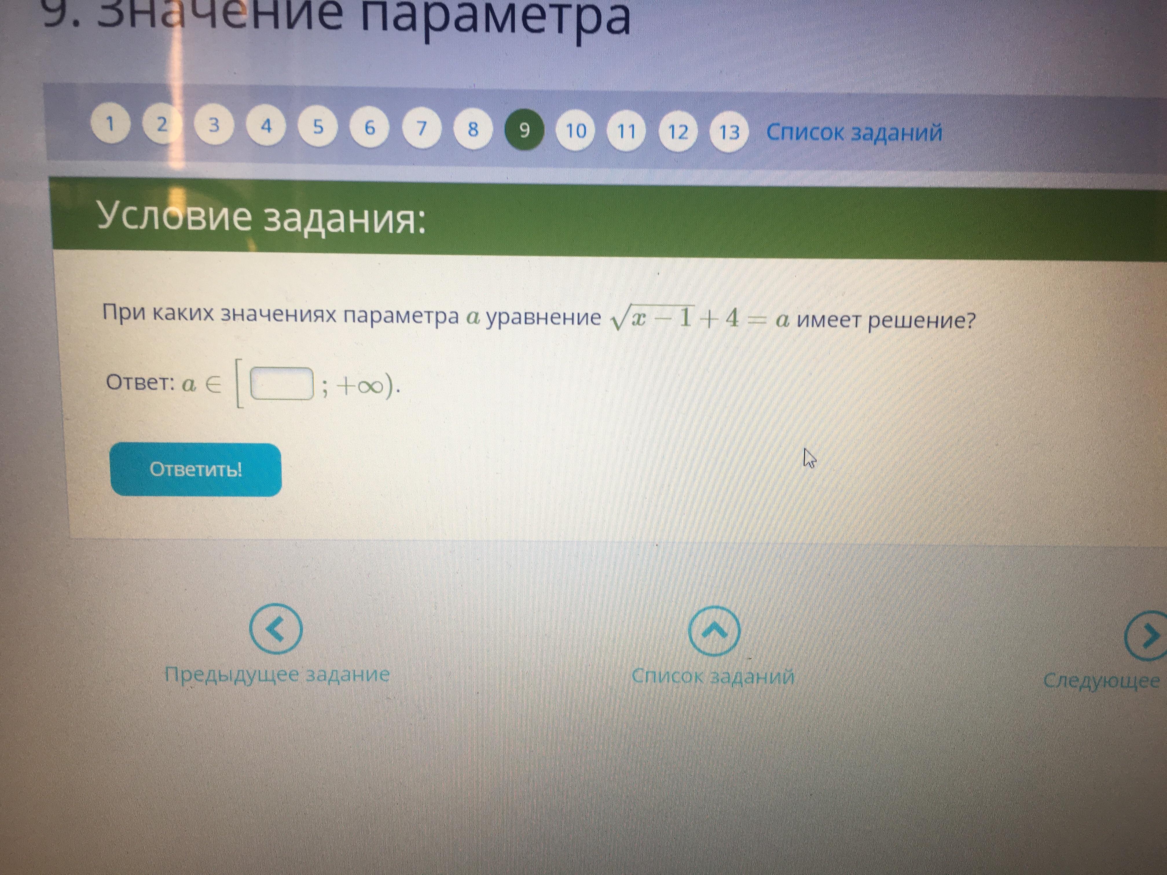 Минимальное значение параметра а при подкоренном выражении равном нулю, а=4