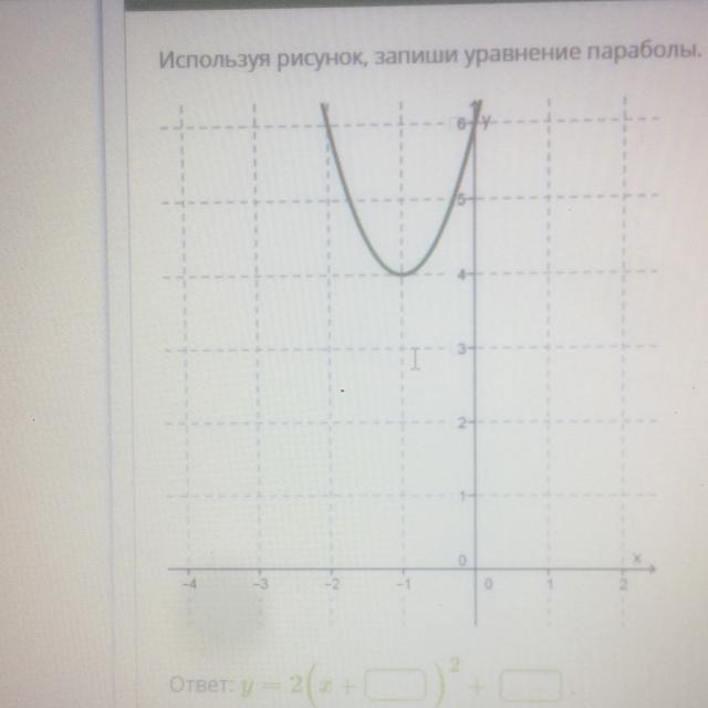 Центр данной параболы смещён на 4 единицы вверх и на 1 единицу влево, а также парабода растянута в два раза, поэтому уравнение будет иметь вид:
