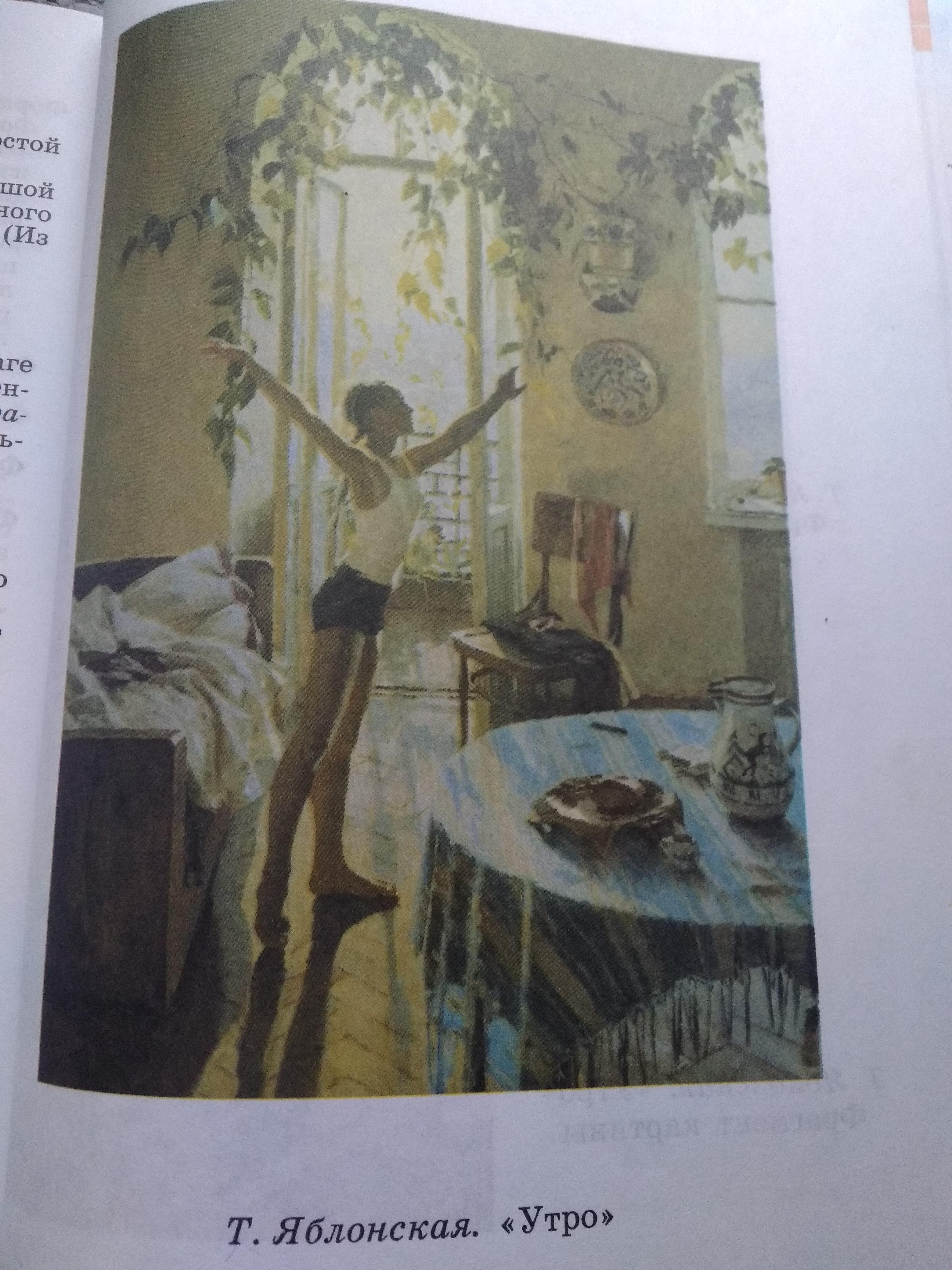 Передо мной картина Т. Н. Яблонской «Утро» . На ней изображено утро девочки.