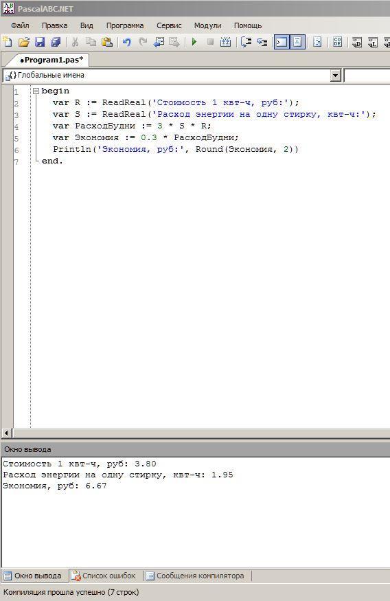 var S := ReadReal('Расход энергии на одну стирку, квт-ч:');