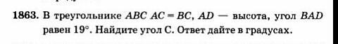 Высота, проведенная на основание треугольника это также и медиана и биссектриса, что значит - ∠BAD = ∠CAD = 19°.