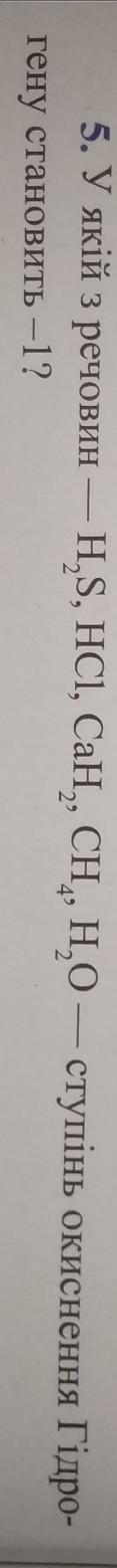 5. У якій з речовин — H2 S, HCI, СаH2, СН4, Н2О — ступінь окиснення Гідро-
