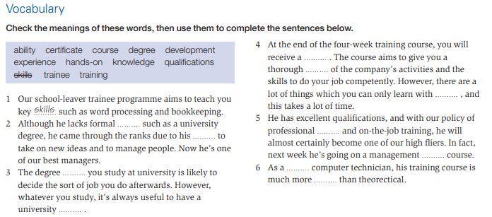 Check the meanings of these words, then use them to complete the sentences below.