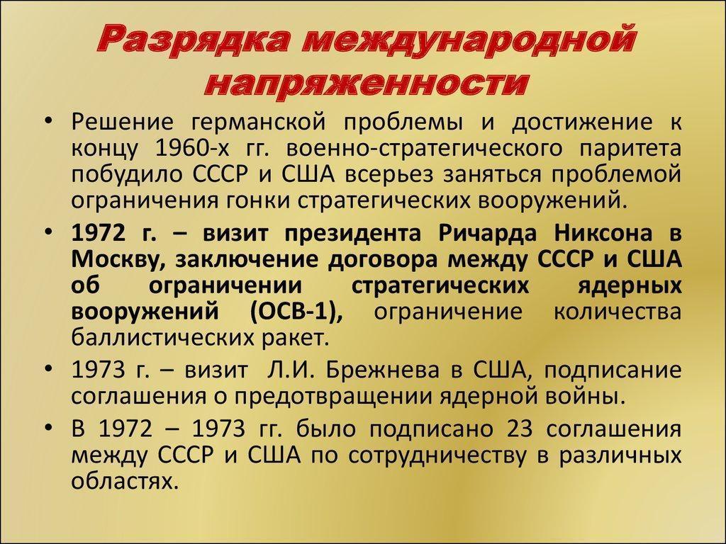 3) Охарактеризуйте периоды разрядки международной напряженности