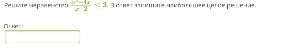 Решите неравенство x2−4xx−2≤3. В ответ запишите наибольшее целое решение.