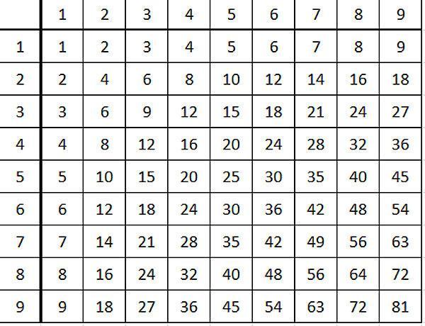 //когда j<10 т.е 1*9=9, будем умножать i=2, т.е 2* 1=2, 2*2=4 и т.д