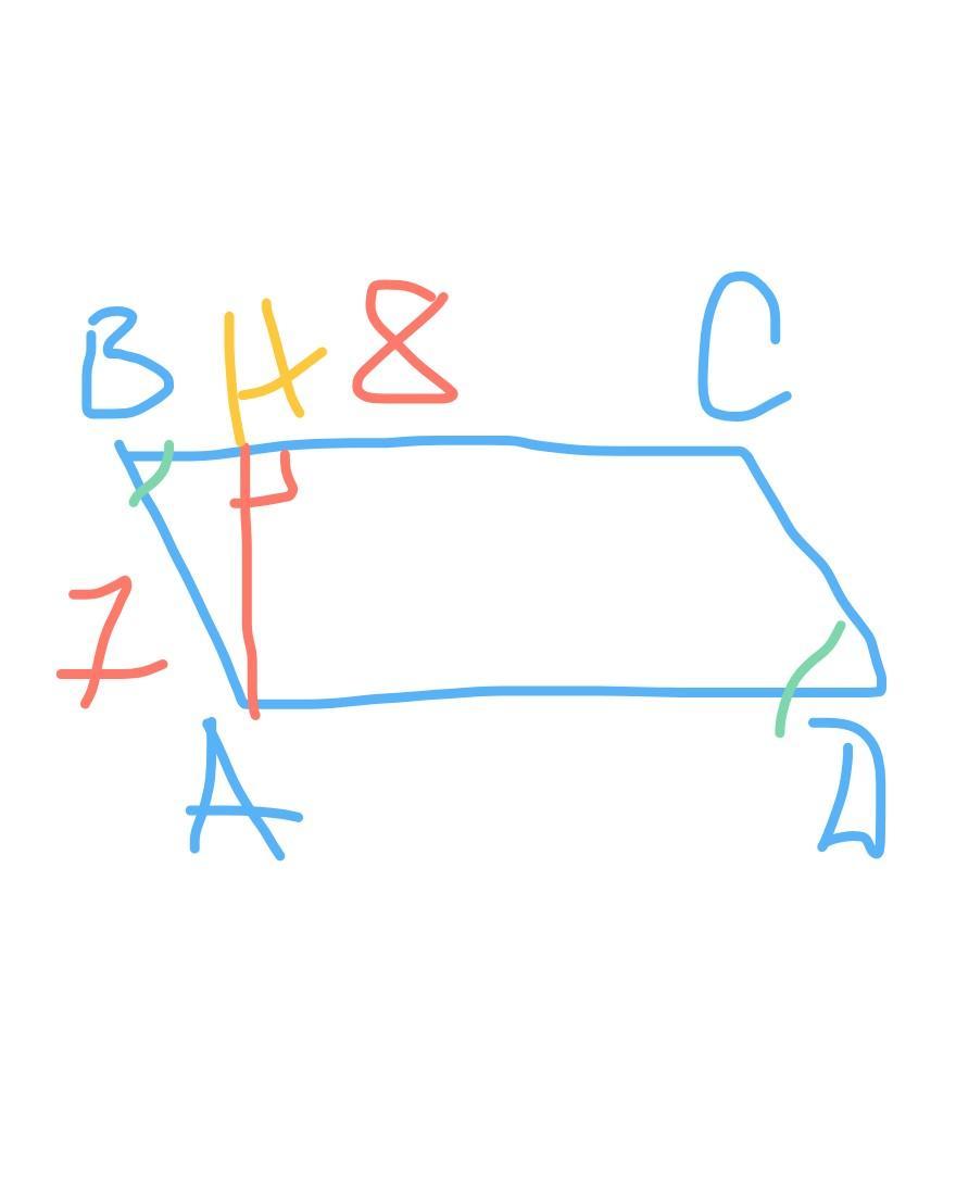 Дано авсд паралелограм, вс=8см,ва=7см,угол в равен 60 градусов. Найти площадь треугольнмка авсд и площадь паралелограмма авсд
