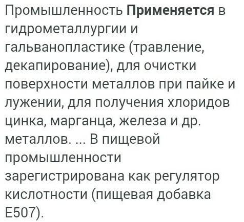 Ответ: Соляную кислоту используют в медицине, в быту, в промышленности, в строительстве.