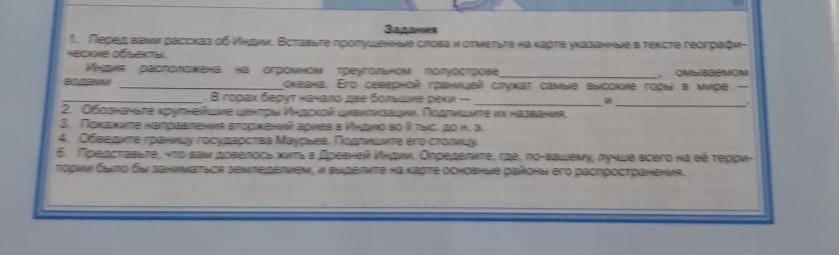 1) Индия расположена на полуострове Индостан, омываемом водами Индийского океана. Его северной границей служат самые высокие горы в мире - Гималаи. В горах берут начало две большие реки - Инд и Ганг.