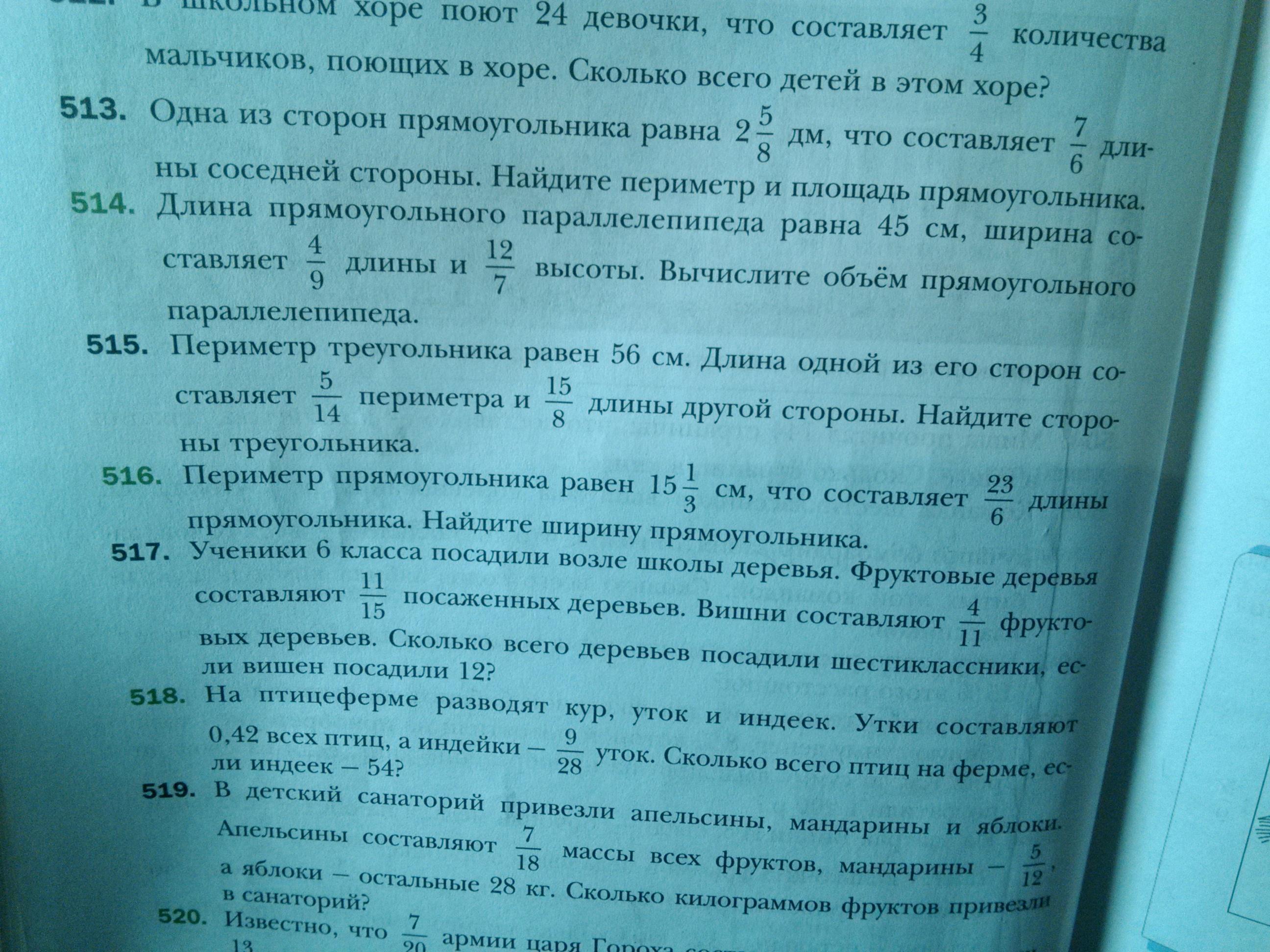 №516. Условие: Периметр прямоугольника равен 15 1/3 см, что составляет 23/6 длины прямоугольника. Найдите ширину прямоугольника.