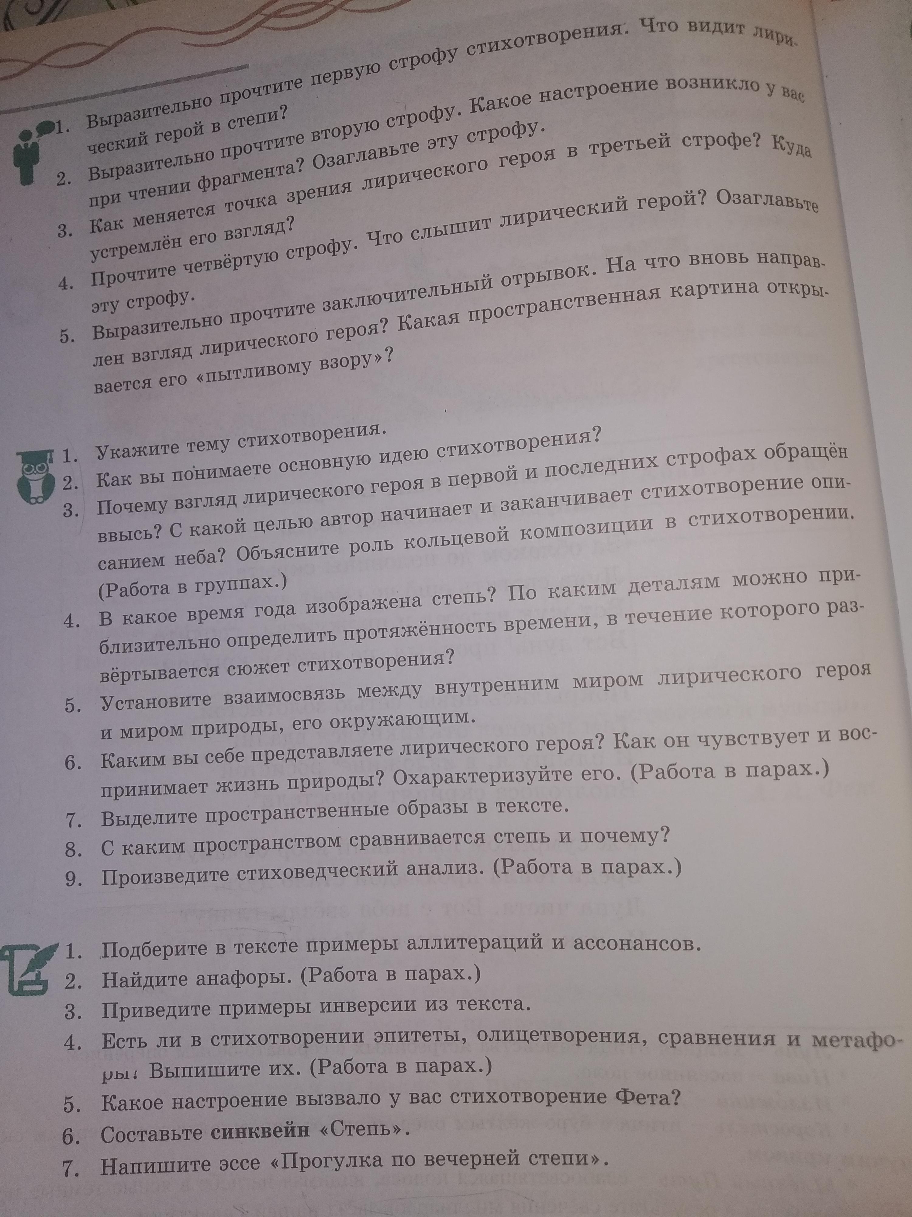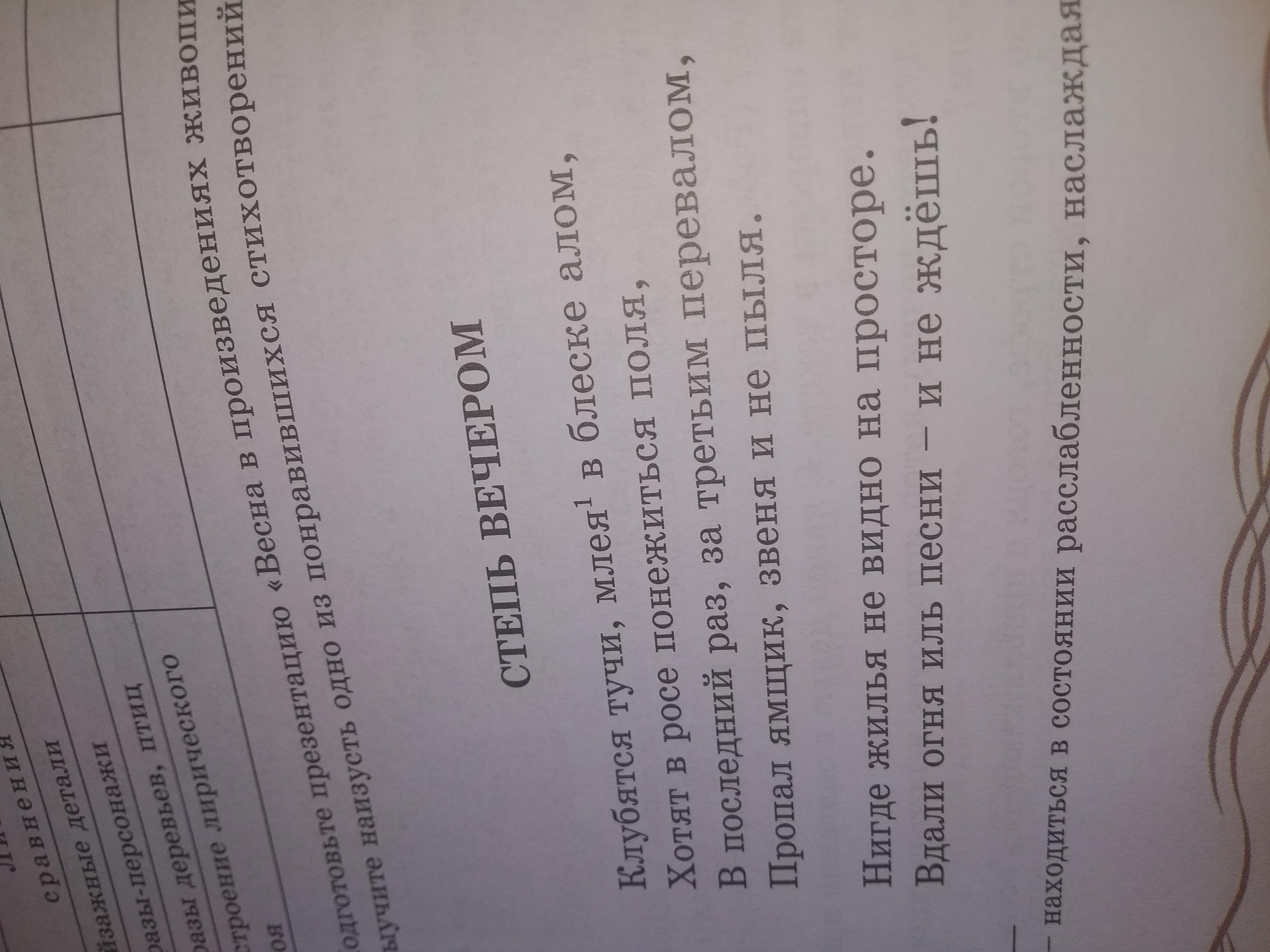 3) Я думаю, что взгляд героя в начале и в конце обращён в высь, во первых, чтобы показать переменчивостью неба, наступление сумерек и некую завершенность. И во вторых, чтобы показать желание герое духовно возвысится, солится с небом и стать частью всеобщей атмосферы. Кроме того присутствуете кольцевая композиция стихотворения, т.е два схожих описание в начале и в конце (описание неба) и отличное от них описание в середине стихотворения (описание непосредственно степи)