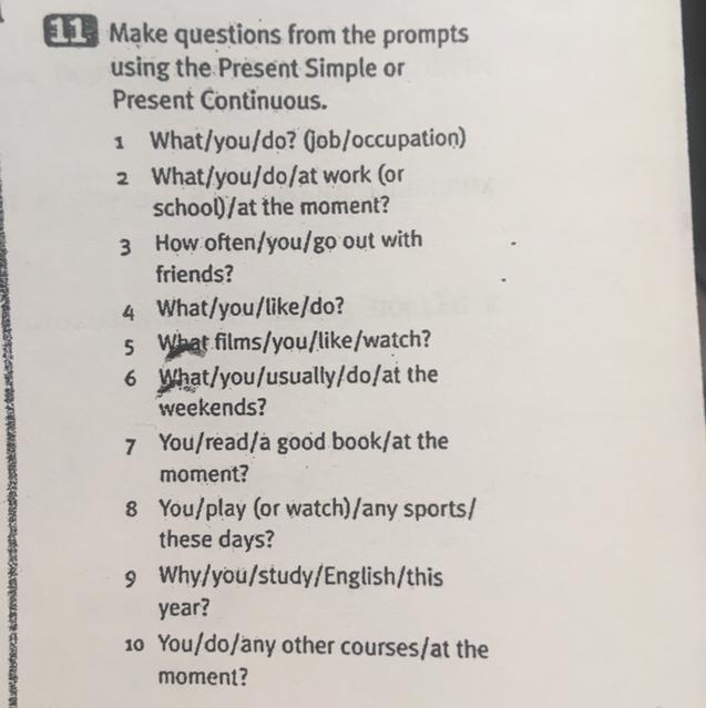 2) What are you doing at work (or school) at the moment?