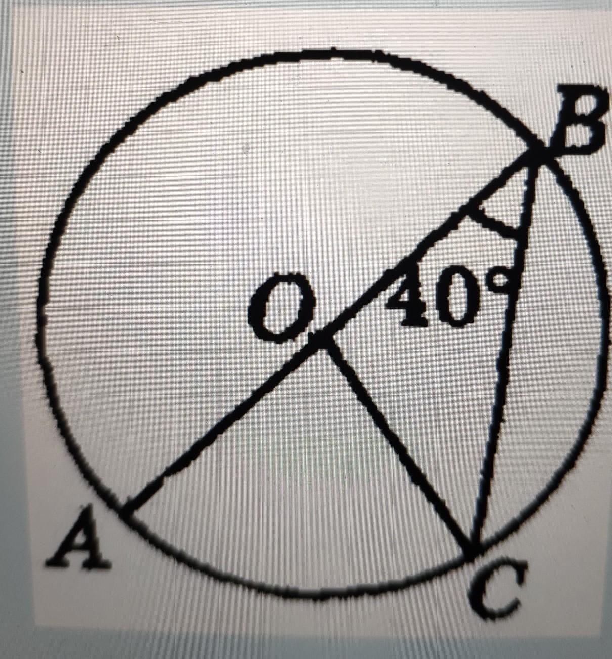 Кут АВС вписаний, спираэ"ться на дугу, градусний вимiр якоi у 2 рази бiльший, тобто 40*2=80°. На цю саму дугу спираэ"ться центральний кут АОС, який теж 80°. Центральний кут маэ" той же вимiр, що i дуга, на яку вiн спираэ"ться.