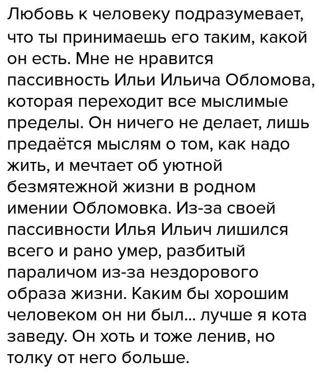 Напишите, пожалуйста, небольшое сочинение - рассуждение на тему: "Смогла ли я полюбить Обломова".