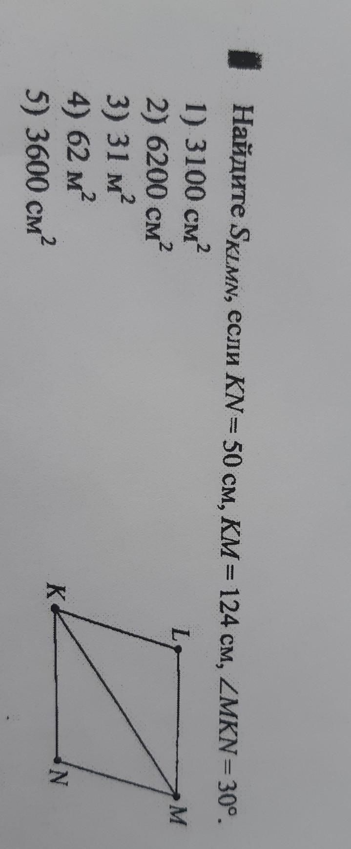 Smnk = 1/2 · 124 · 50 · 1/2 = 1550 см²