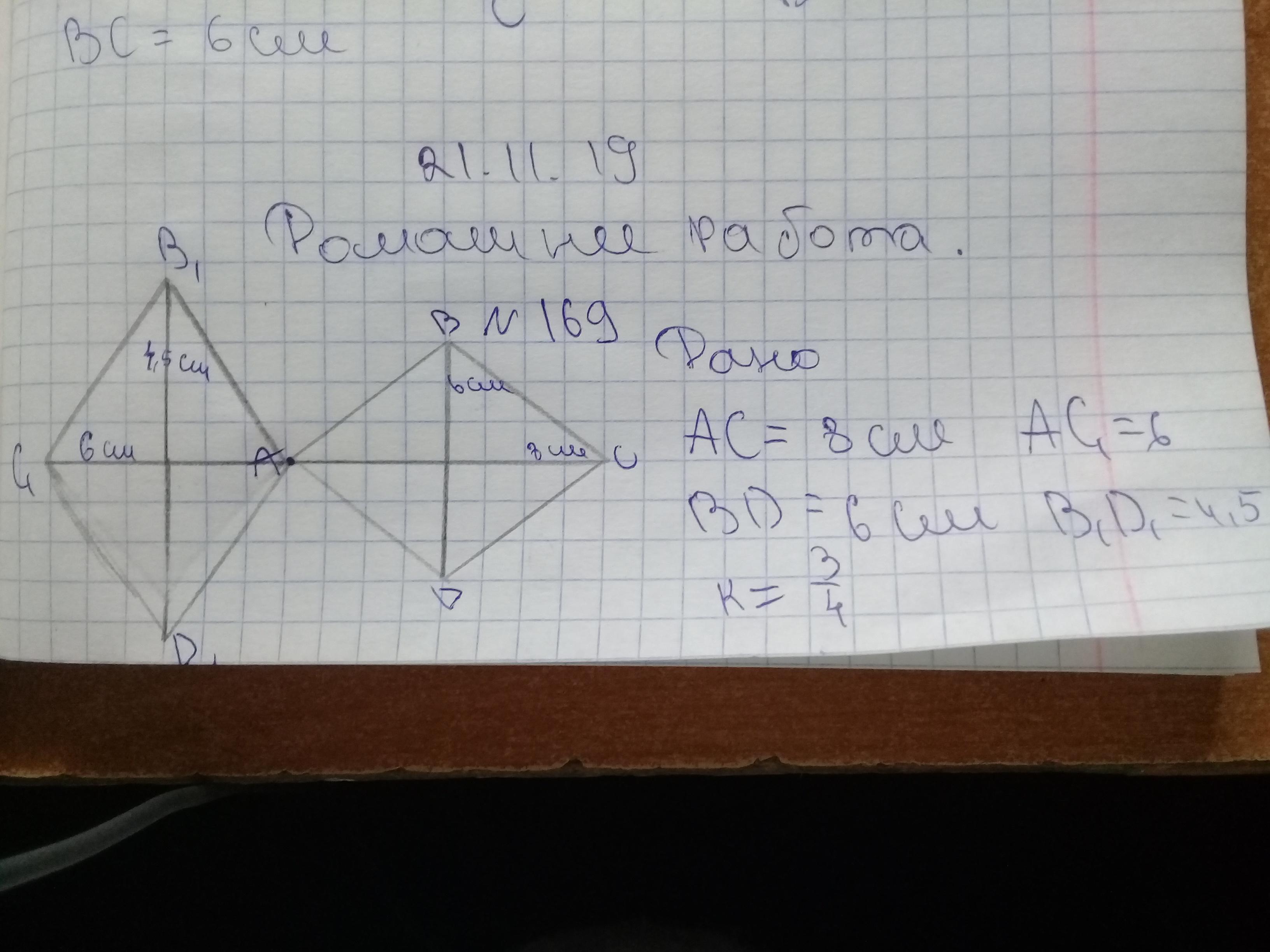 169. Дан ромб ABCD, в котором AC = 8 см, BD = 6 см. а) Используя