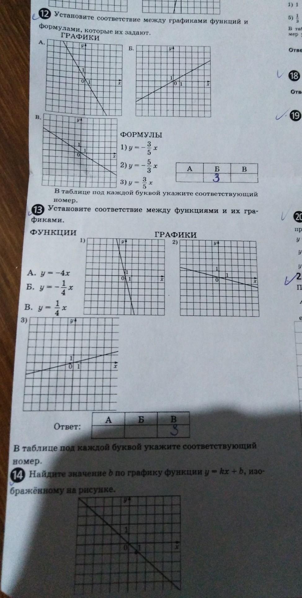 12) Графики с положительным коэффициентом при х проходят преимущественно в 1-ой и 3-ей координатных четвертях, то есть 3 график точно принадлежит Б.